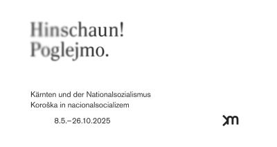 Razstava Hinschaun! Poglejmo. nas spodbuja, da si obdobje nacističnega režima na avstrijskem Koroškem ogledamo z nepristranskega stališča, hkrati pa nas 80 let po koncu druge svetovne vojne vabi, da se soočimo s potlačenimi vidiki naše lastne zgodovine. Iz avstrijske Koroške nas razstava popelje na vojna prizorišča in kraje uničenja na Norveškem, Poljskem, v Sloveniji, na Hrvaškem in v Italiji, osvetljuje odpore, razkriva pozabljena prizorišča zločinov, postavlja povojne biografije v nov kontekst in ponazarja vlogo muzeja.